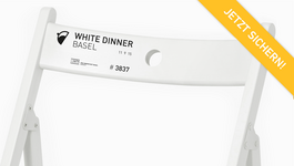 Letzte Chance auf der Mittleren Brücke! Sichere dir jetzt deinen Platz am White Dinner Basel und kaufe dir den persönlichen, nummerierten White Dinner Basel Stuhl im 2er-Set für Fr. 80.- inkl. Spende ans Basler Spendenparlament. Wenn du mit Freunden und Bekannten das White Dinner Basel geniessen möchtest, bieten wir dir ebenfalls ein 4er- sowie ein 8er-Set an. ¬ whitedinnerbasel.ch